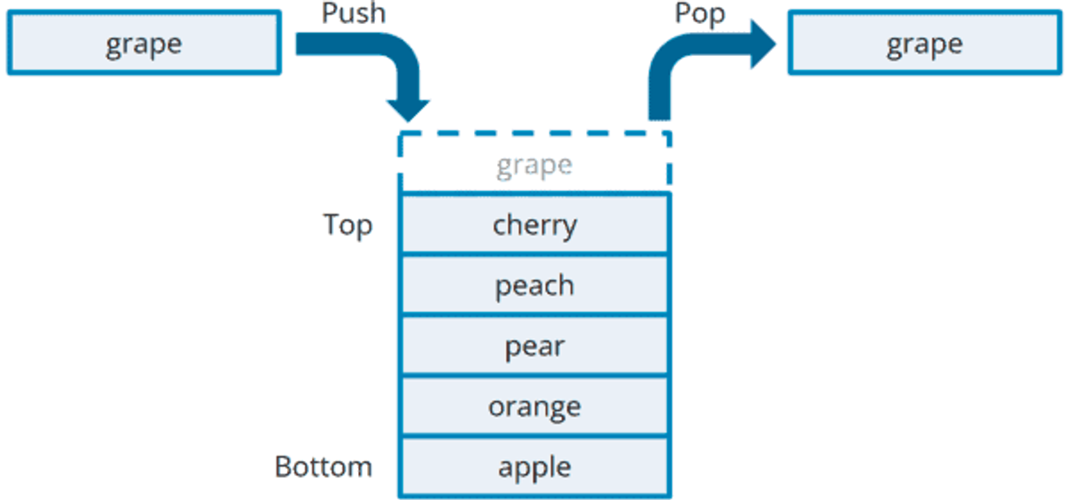 - 스택의 Top에서 원소를 가져오는 행위. Push로 넣었던 원소가 나오게 된다.