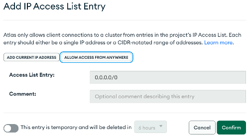 ALLOW ACCESS FROM ANYWHERE - 어디서든 접속 허용
