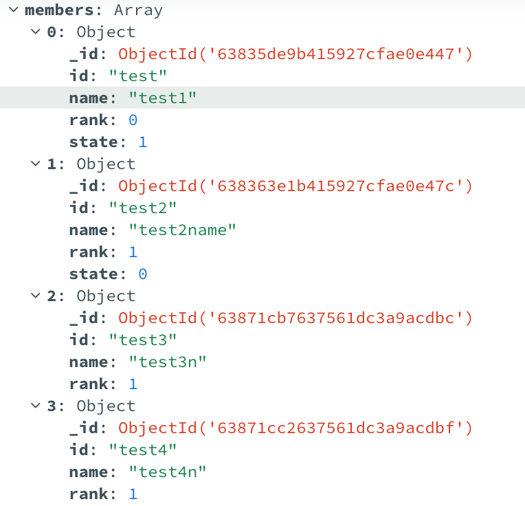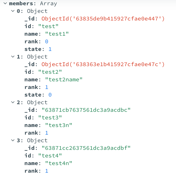 위 사진과 같은 collection이 있을 때, members 안에 멤버 Object를 추가해줘야 하는 상황이다.
