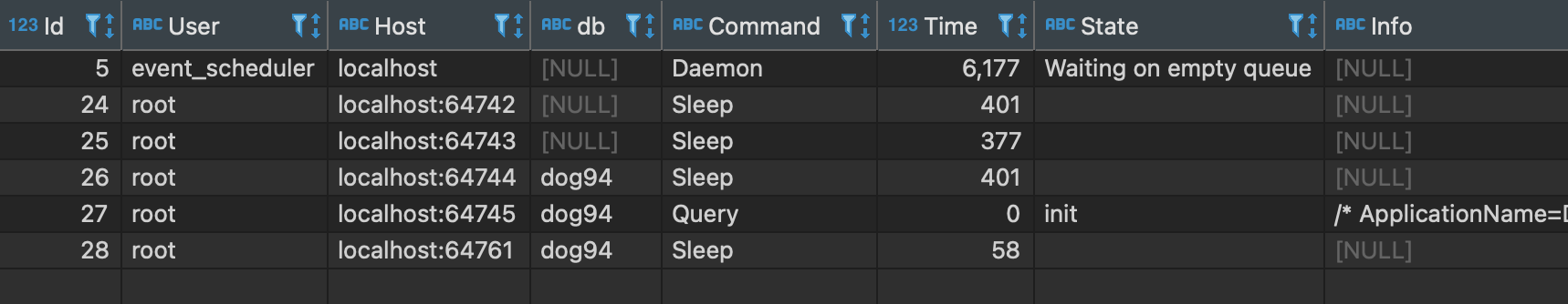 SHOW PROCESSLIST;