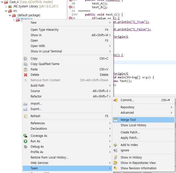 - 고쳐야할 Class 오른쪽 마우스 - Team - Merge Tool 선택