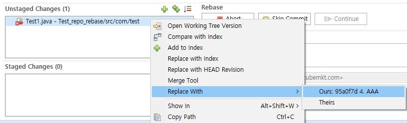 Git Staging View에서 위와 같이 선택하는 방법도 있다.