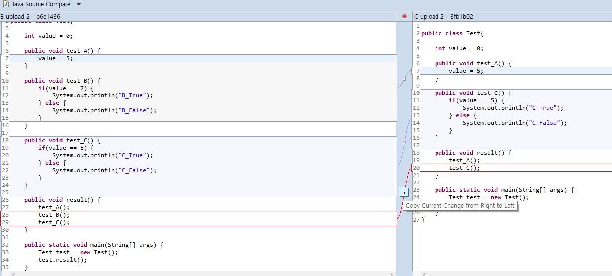 - (C -> A) 병합 진행 중 발생하는 Conflict에 대한 내용