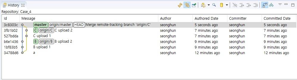 History View에서 위와 같이 그동안 작업 및 병합한 과정을 확인할 수 있다.