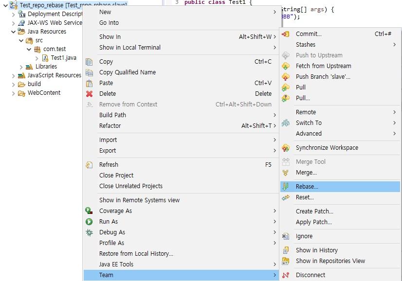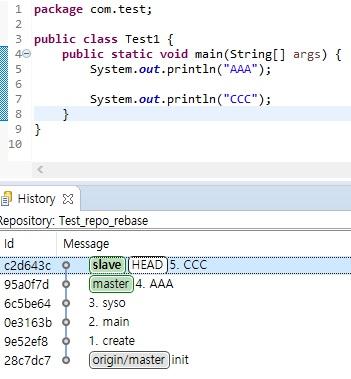 - head가 slave인 상태를 확인한 후 rebase를 선택한다.