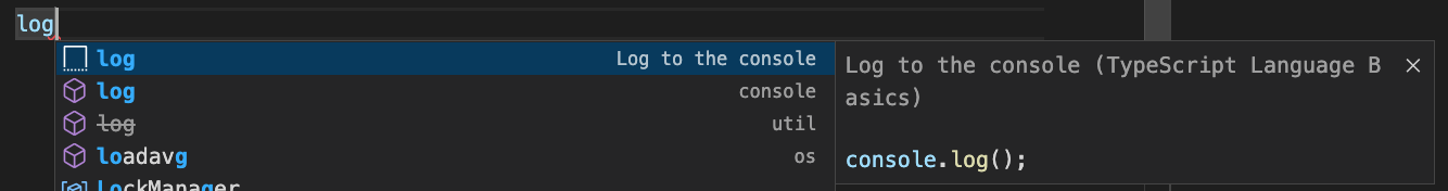 log만 치고 컨트롤+스페이스 하면 console.log가 만들어짐