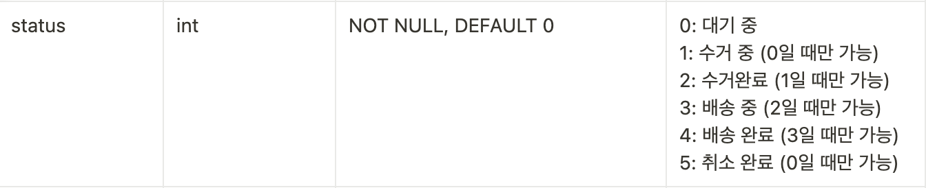 그냥 'waiting', 'cancelled' 같은 varchar를 써도 된다는 입장이었다.