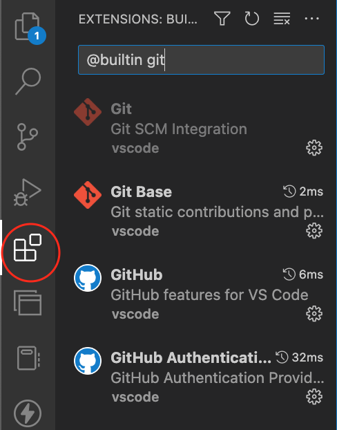 확장(Extensions) 누르고 @builtin git 검색해서 나오는