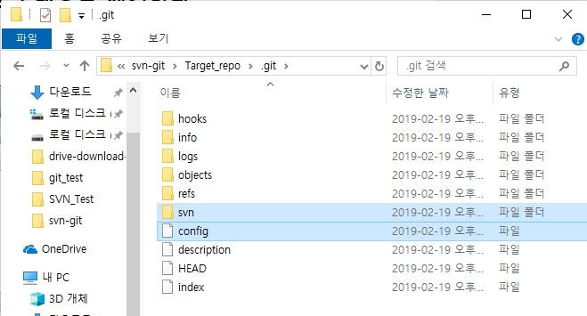 svn에 대한 정보는 svn 폴더와 config 파일에 담겨있다.