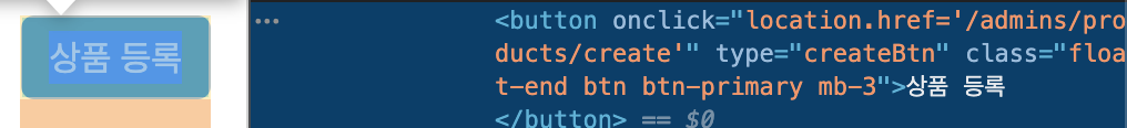 <button onclick="location.href='/admins/products/create'" class="float-end btn btn-primary mb-3">상품 등록</button>