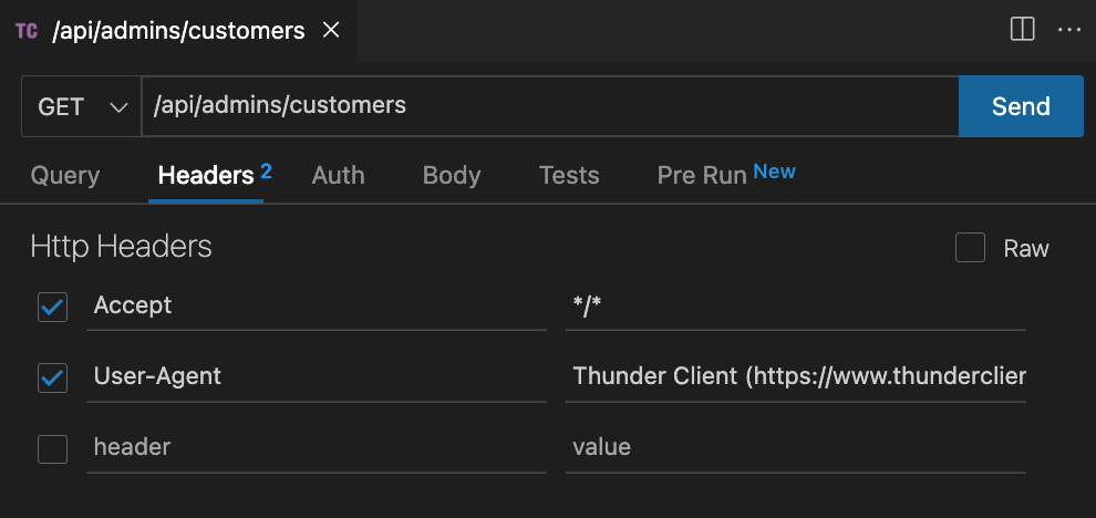 문제는 이걸 Thunder Client에서 어떻게 구현하냐는 것.