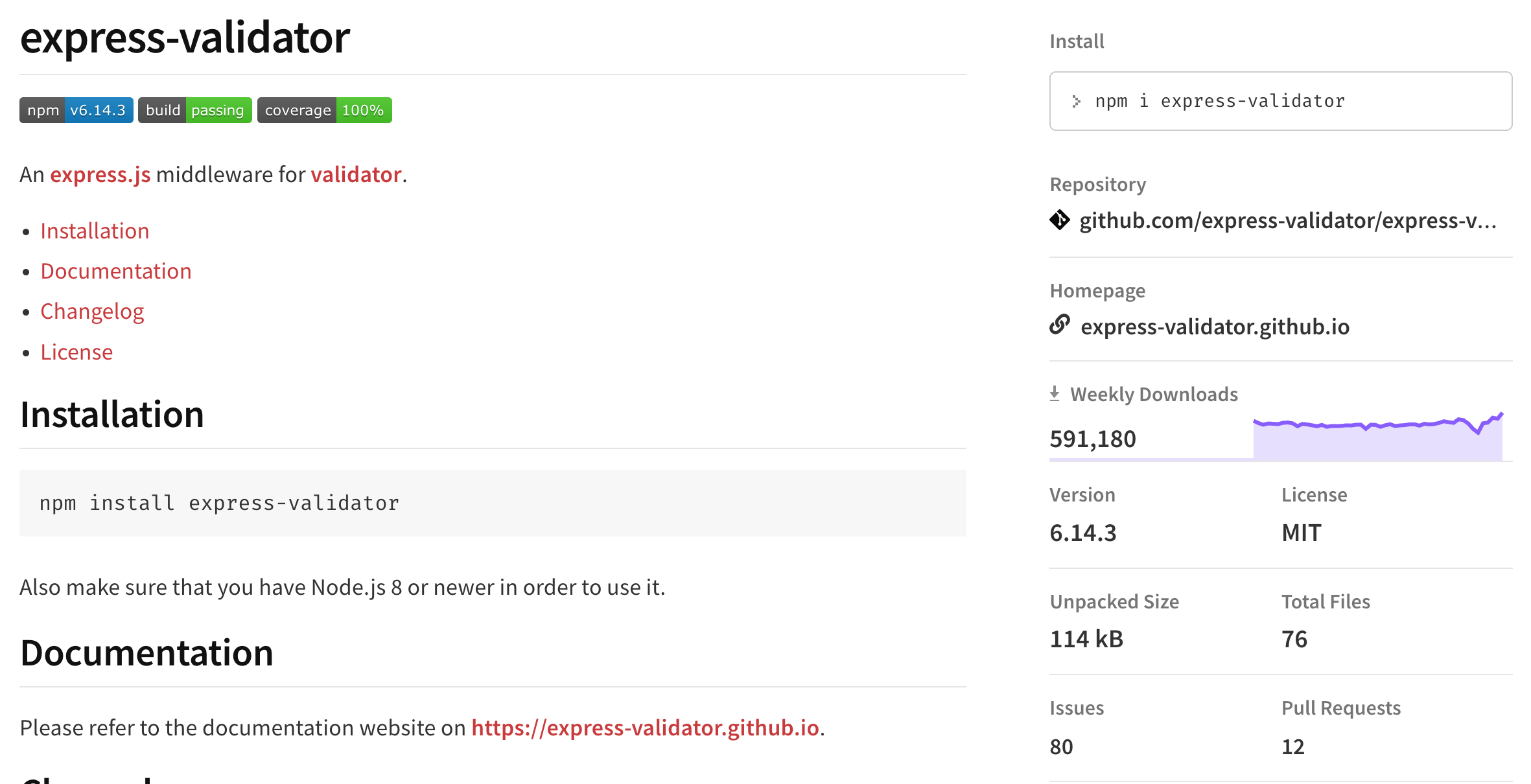 Express middleware for the validator module.. Latest version: 6.14.3, last published: 19 days ago. Start using express-validator in your project by running `npm i express-validator`. There are 8398 other projects in the npm registry using express-validator