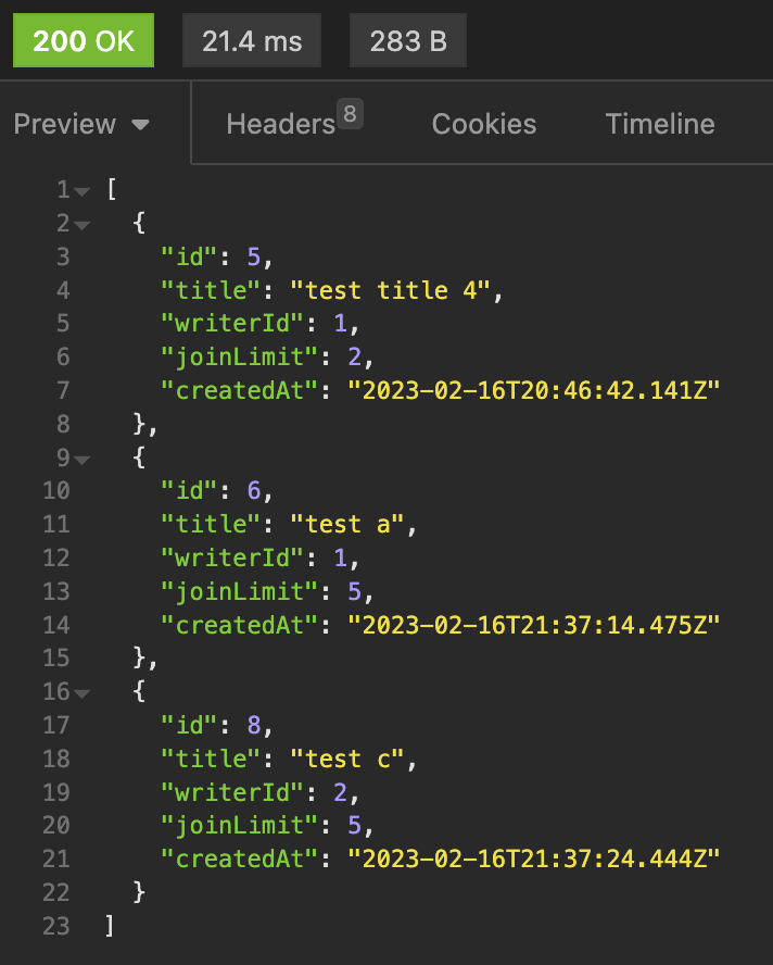 select: ['id', 'title', 'writerId', 'joinLimit', 'createdAt'],