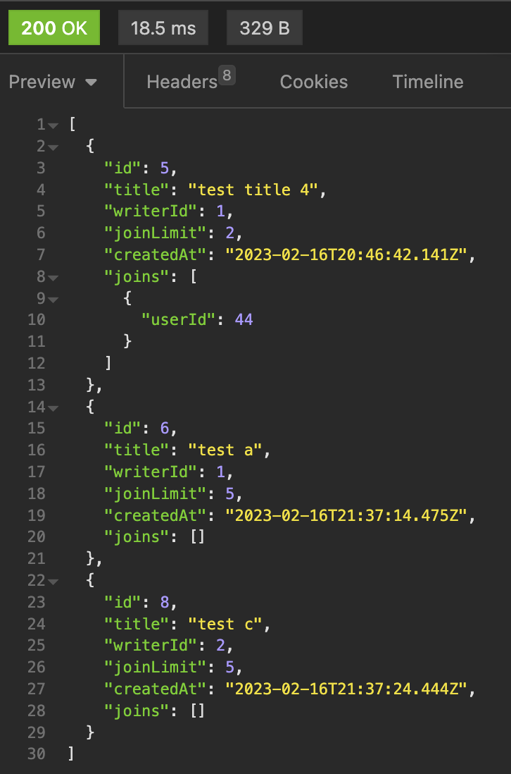 이렇게 join을 한 상태로 데이터를 잘 가져오는 것을 확인했다.