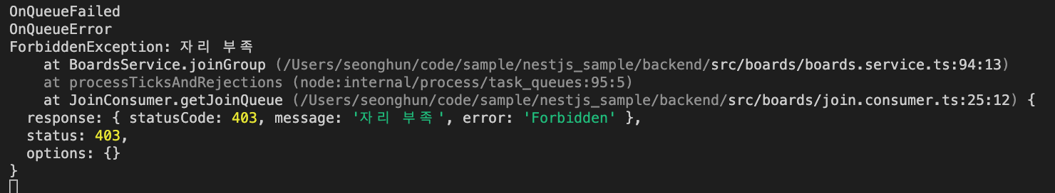 @OnQueueError()를 붙인 핸들러는 Error를 얻는걸 확인할 수 있었는데