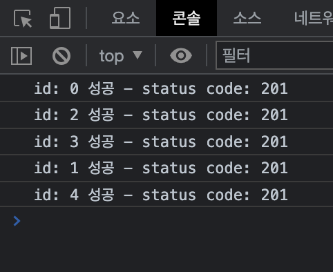 5개 요청 중 2개의 요청만 잘 저장되는 것까지 확인했다.