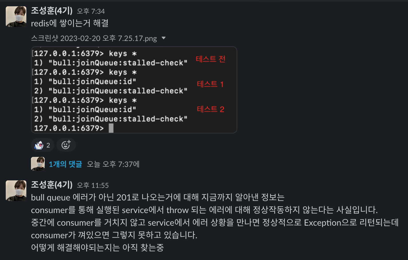 Redis에 쌓인 대기열 처리를 먼저 진행하게 되었는데
