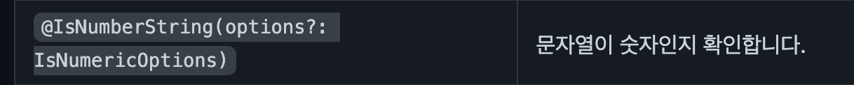 이번엔 @IsNumberString()을 키워드 삼아 또 열심히 구글링 했는데