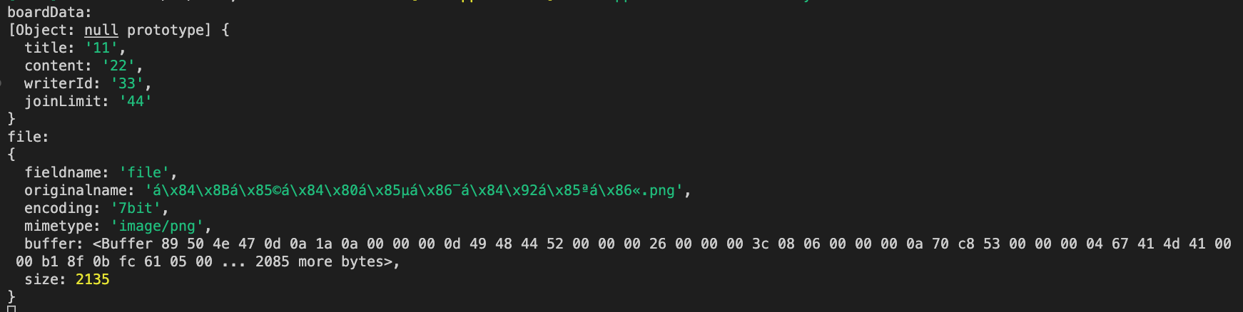 위 코드는 일단 multer를 사용했을 때 데이터가 잘 넘어오는지 확인하느라