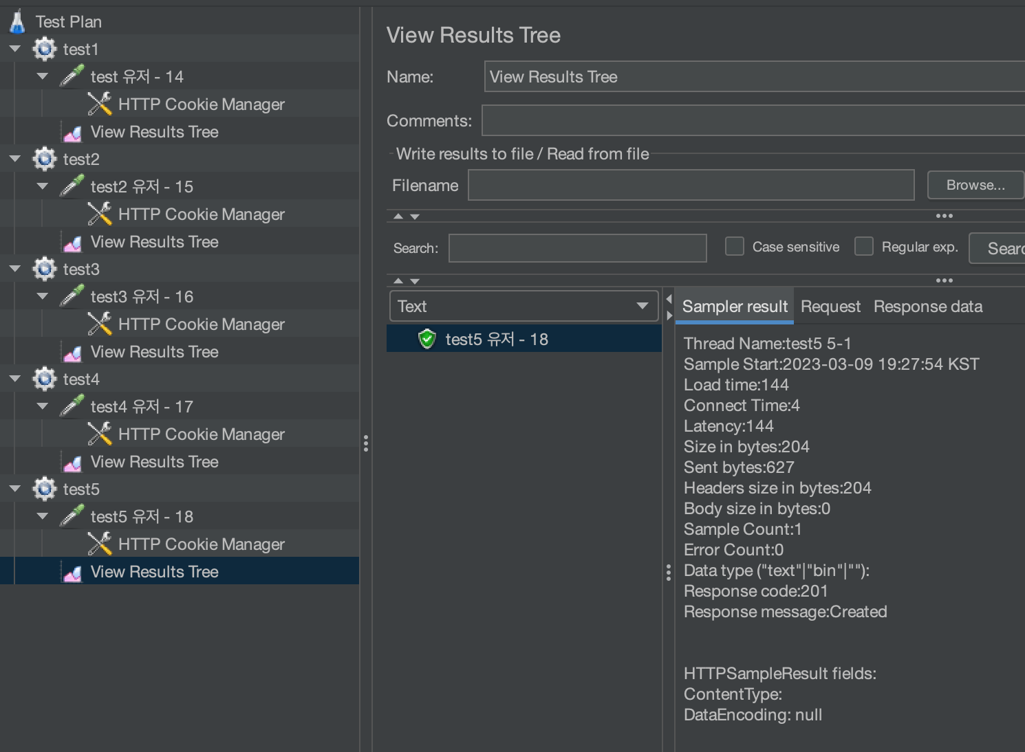 이렇게 만들면서 listener는 View Results Tree만 있으면 될 것 같아 나머지는 지워버렸다.