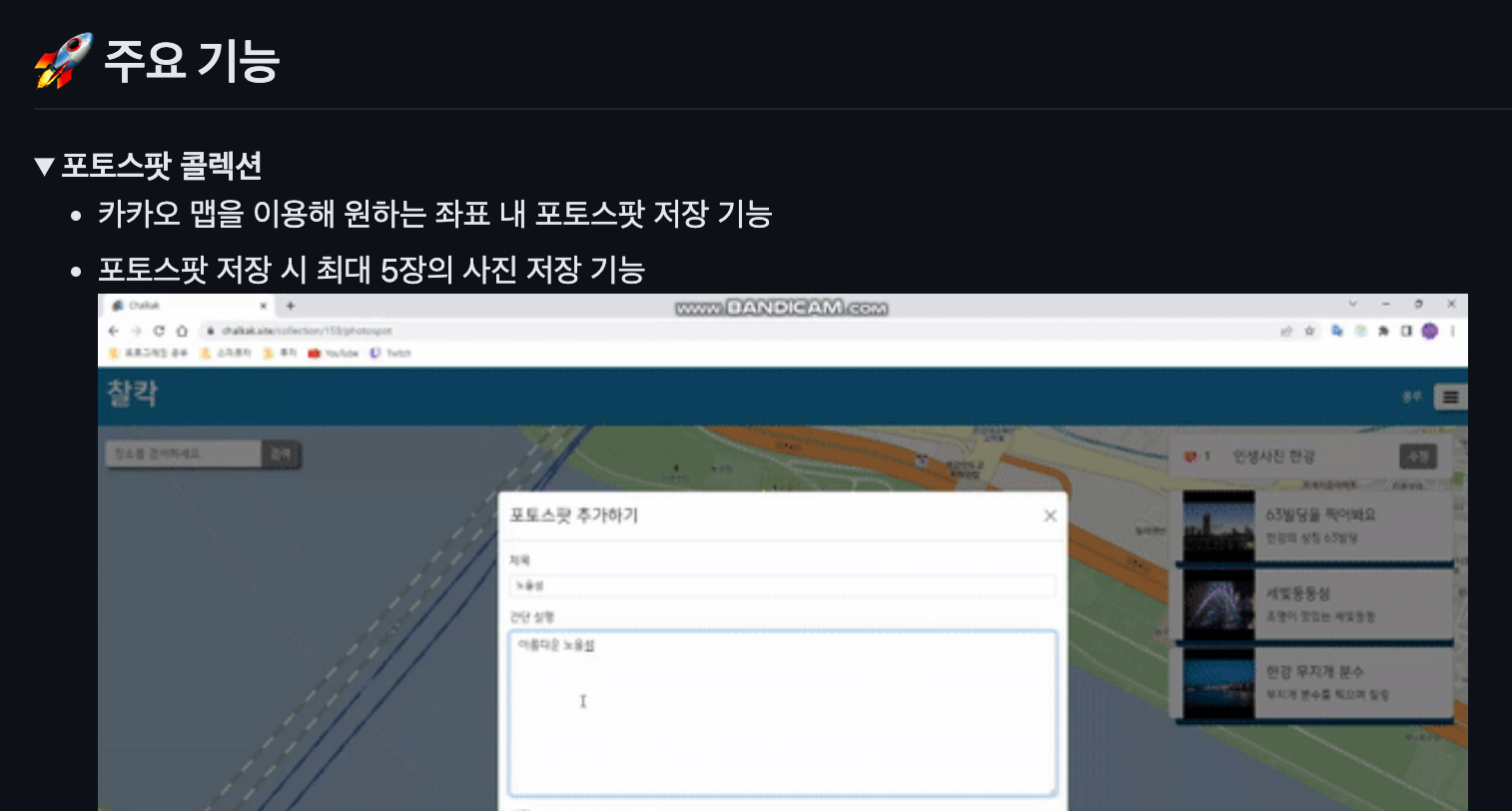 <li>카카오 맵을 이용해 원하는 좌표 내 포토스팟 저장 기능</li>