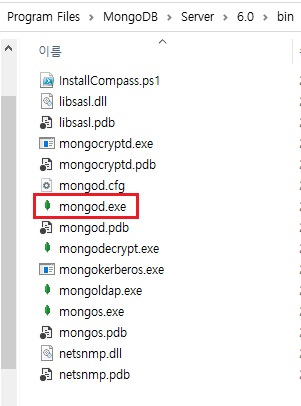 mongod.exe 실행 후 같은 폴더에 있는 mongo.exe를 통해 몽고디비를 사용하게끔 되어있다.