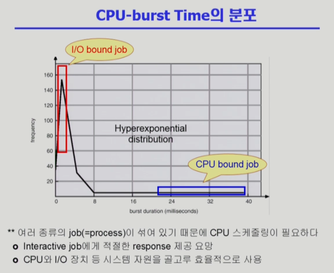 이렇게 여러 종류의 job(=process)이 섞여 있기 때문에 CPU 스케줄링이 필요