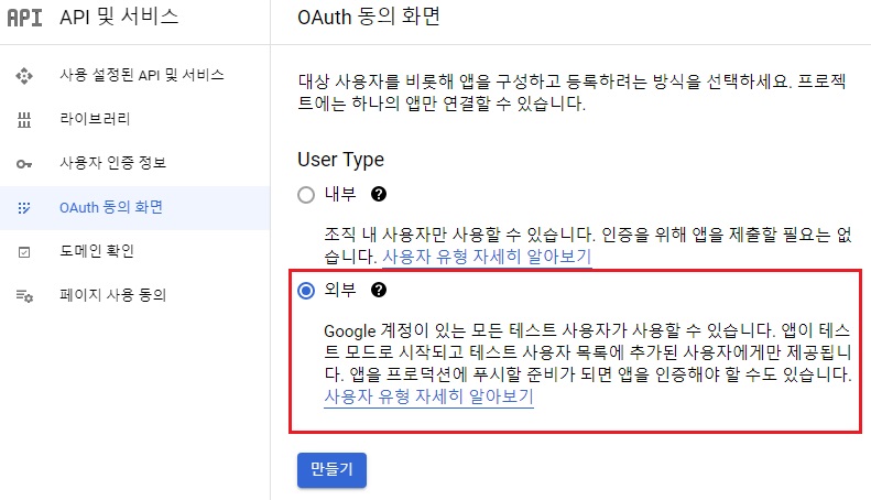 2. OAuth 동의 화면 설정