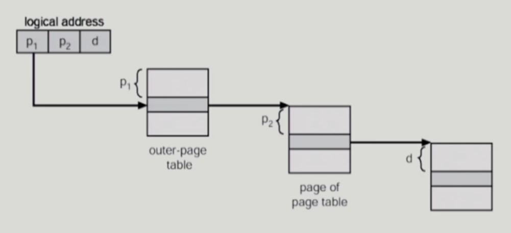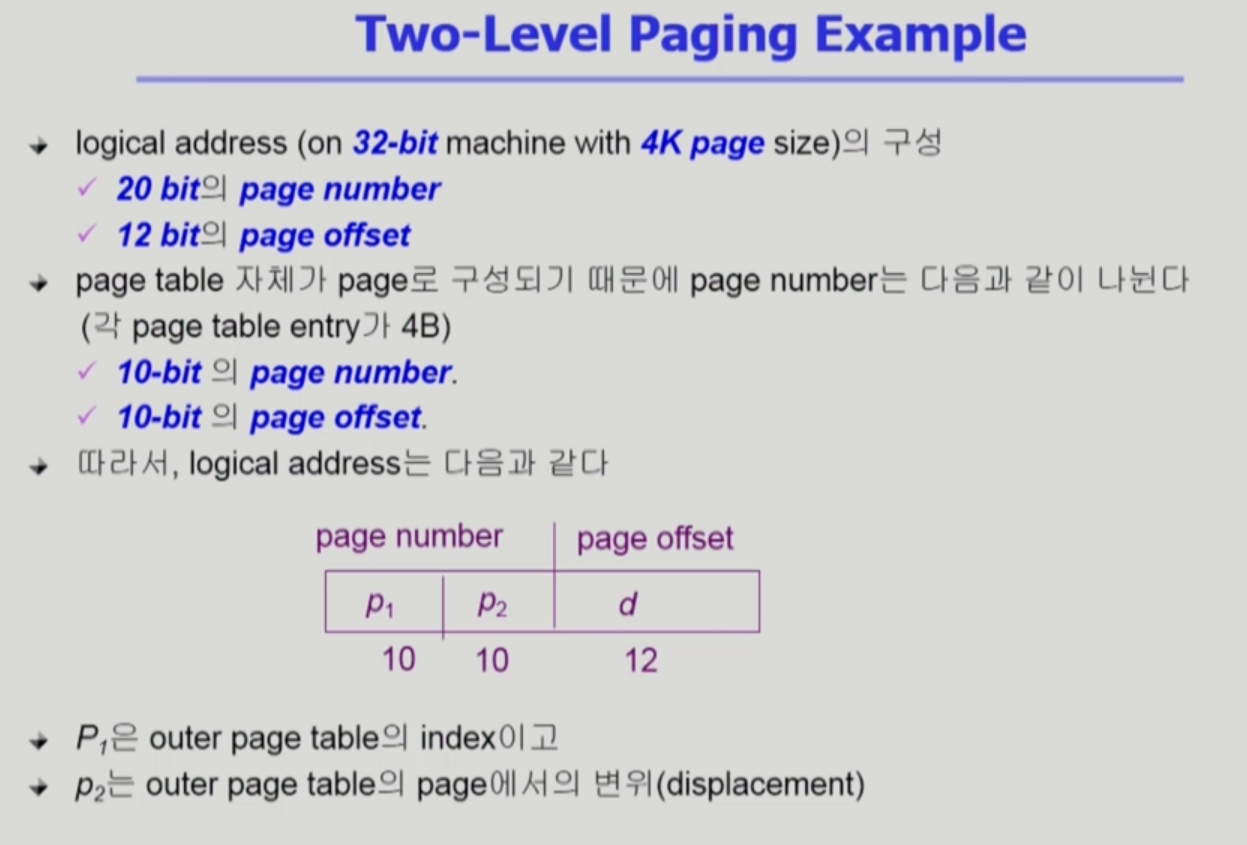 - 기존 방법보다 시간은 더 걸리지만 page table을 위한 공간을 줄이는 방법