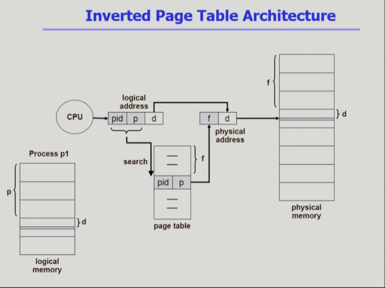 - 원래의 page table을 통한 주소 변환을 역발상으로 뒤집어 놓은 모습