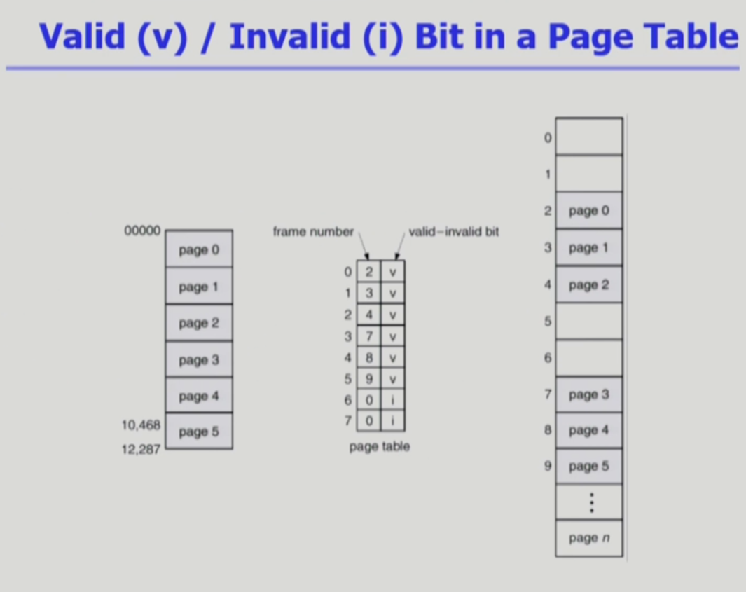Valid(v) / Invalid(i) Bit in a Page Table