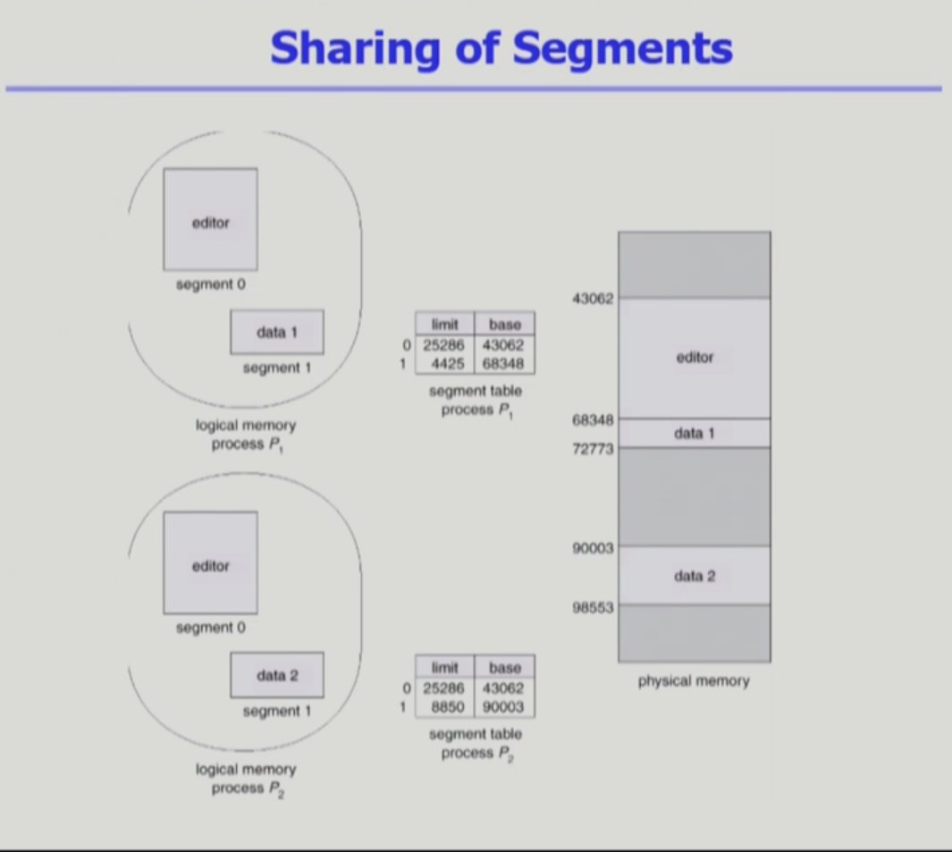 - * segment는 의미 단위이기 때문에 공유(sharing)와 보안(protection)에 있어 paging보다 훨씬 효과적