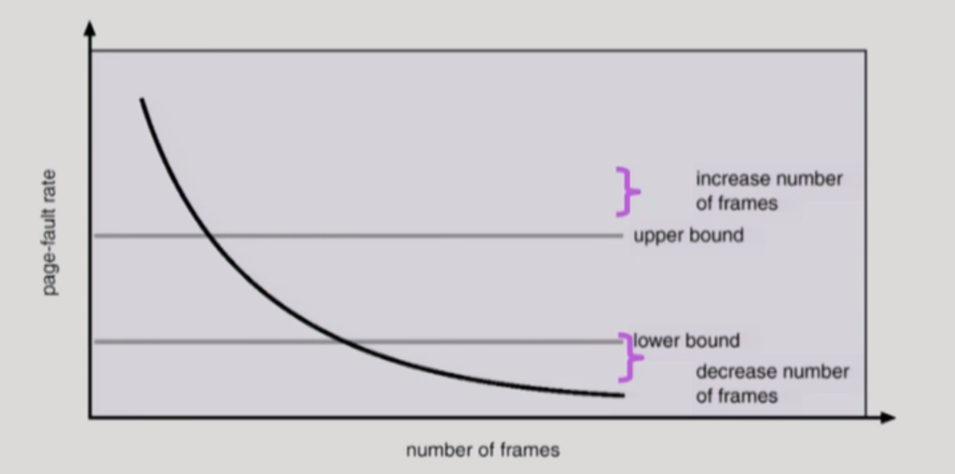 - page-fault rate이 상한값을 넘으면 frame을 더 할당