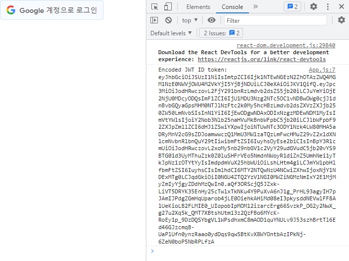 이전 포스팅(Google OAuth2 - 구글 로그인 with React, Vue (2022 ver) - React(1))에서 결과물로 얻은 값은 jwt라고 하는데 jwt는 (Json Web Token)의 약자로, Json 포맷을 이용해 인증에 필요한 정보를 암호화..