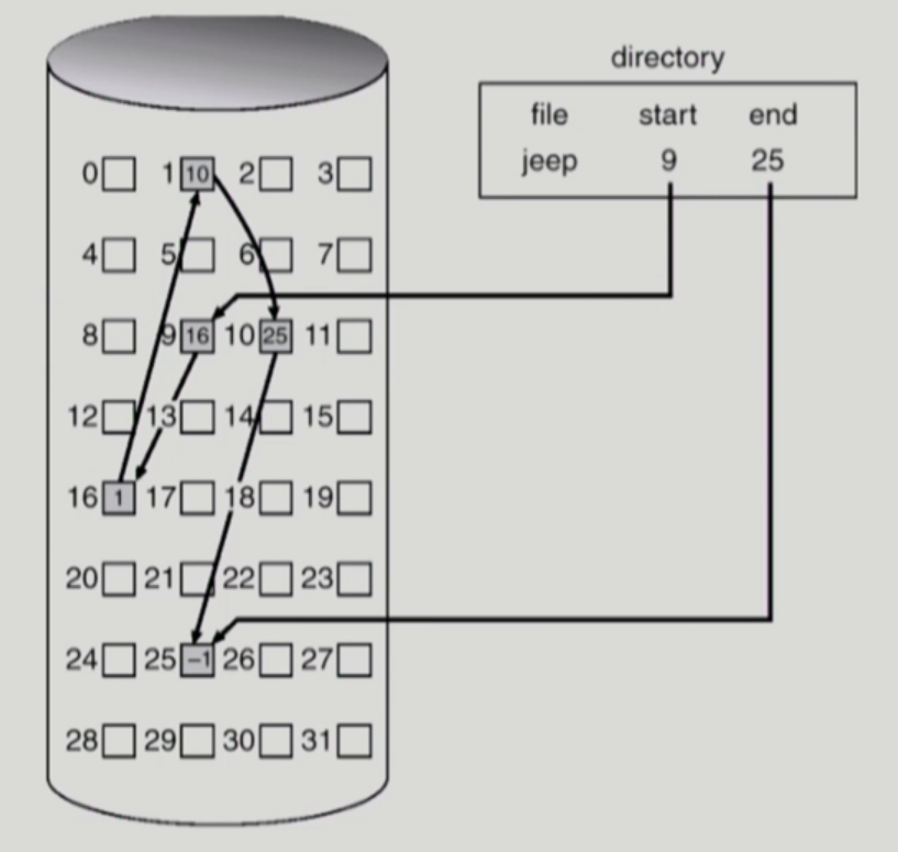 - Linked Allocation (연결 할당)