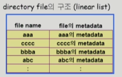 - 디렉토리란 해당 디렉토리 밑에 있는 파일의 메타데이터를 관리하는 특별한 파일