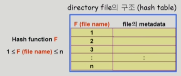 - Hash table은 file name을 이 파일의 linear list의 위치로 바꾸어줌
