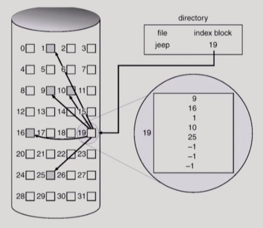- Indexed Allocation (인덱스로 할당)
