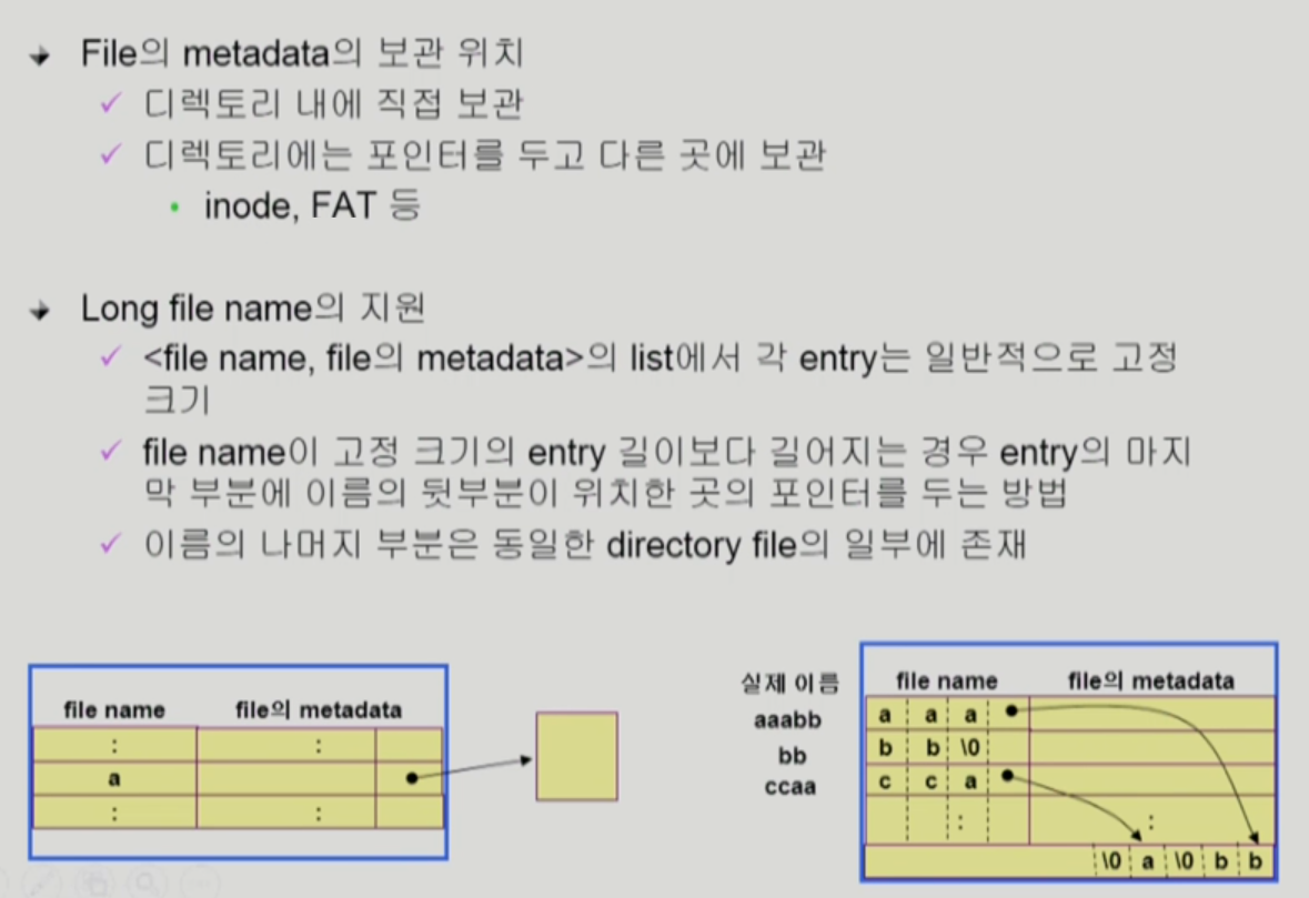 - UNIX 파일시스템의 경우 디렉토리는 메타데이터를 지극히 일부분만 가지고 있고
