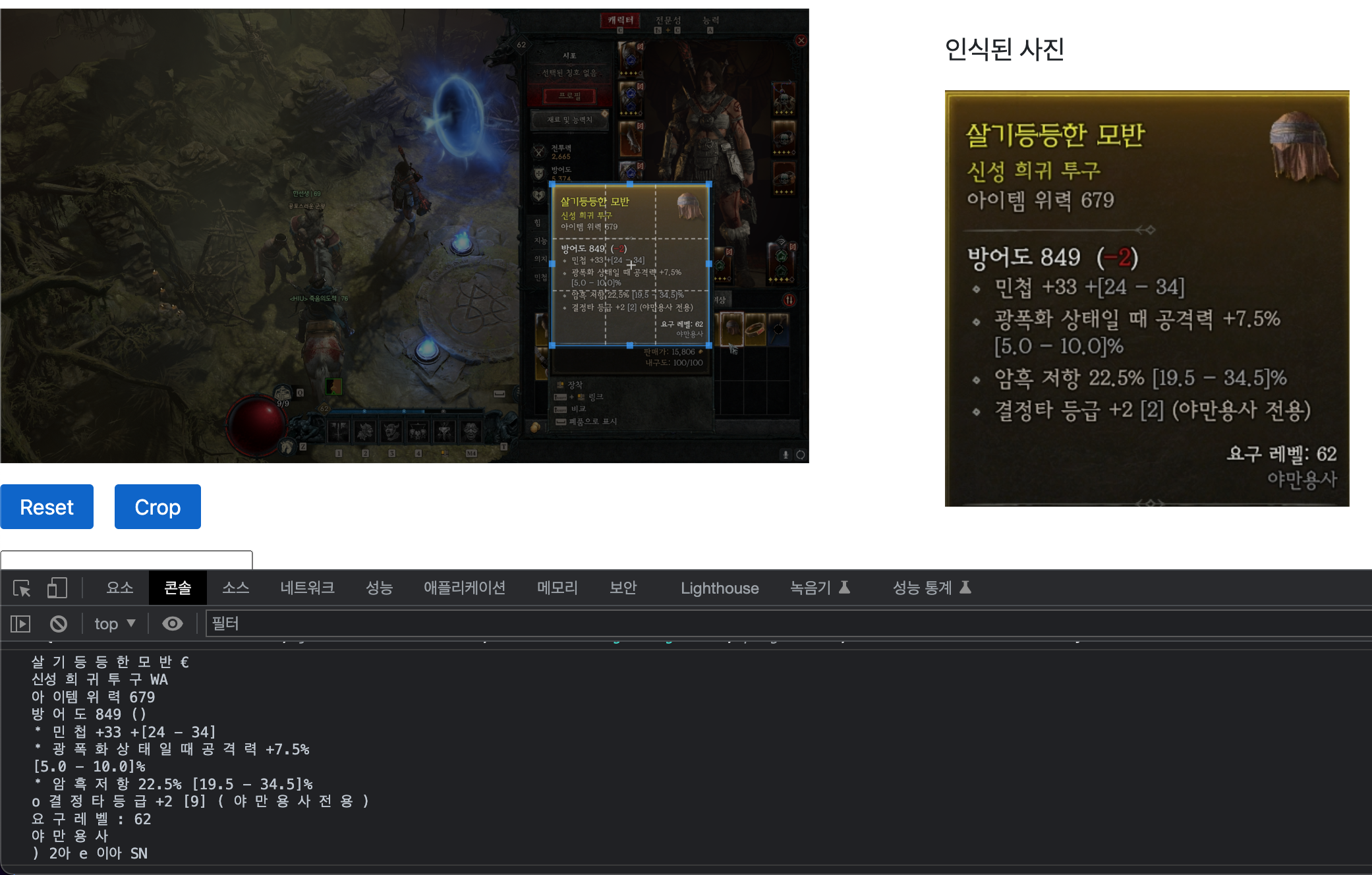 | 디아블로4 경매 사이트 만들기 (1) - OCR, Tesseract.js (0) | 2023.06.15 |