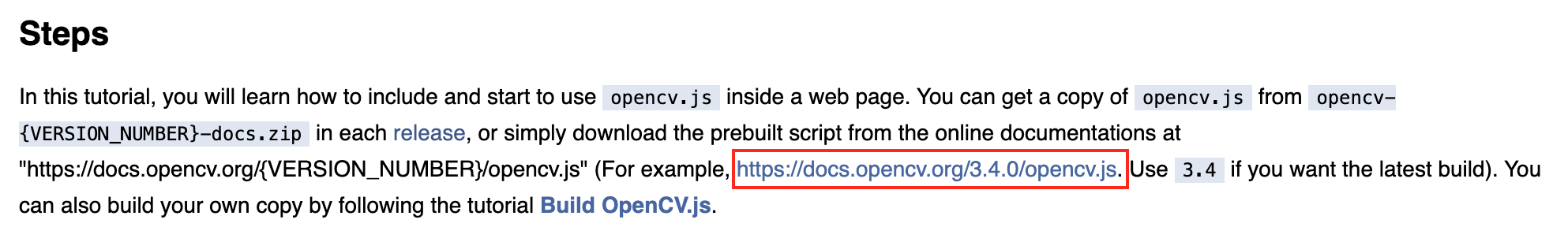 위 링크에 들어가면 opencv.js 파일 안내가 나오는데