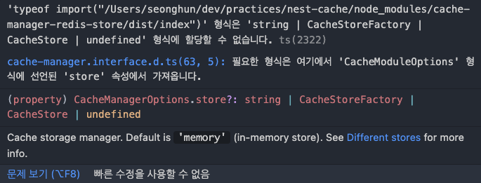 2023년 초에 등록된 듯 한데, 사용할 때 devDependencies에 @types/cache-manager가 없으면 에러가 나긴 하더라.