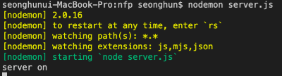 nodemon 이라는 서버 자동 재실행 라이브러리 사용하는거임